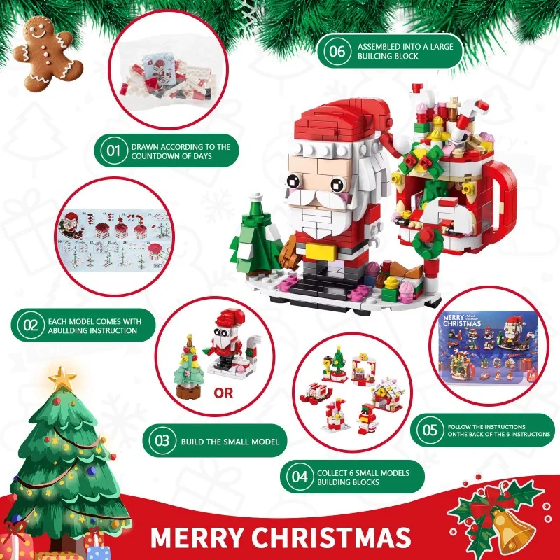 Start a new holiday tradition with our Advent Calendar Christmas Building Blocks set! Every day for 12 days, children can build a new, fun holiday-themed model, encouraging their creativity and excitement leading up to Christmas. This interactive toy set includes 605 pieces, allowing for the construction of 12 unique models or two larger complex models, making the holiday season even more magical.