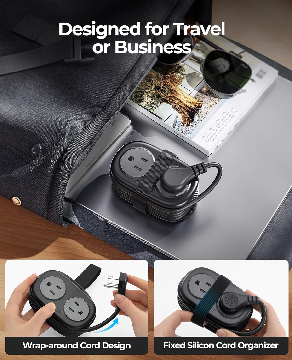 Power up to 7 devices at once with 4 AC outlets + 2 USB-A + 1 USB-C. Perfect for 📱 phones, 💻 laptops, and 🎧 travel gadgets—no need for multiple bulky chargers.